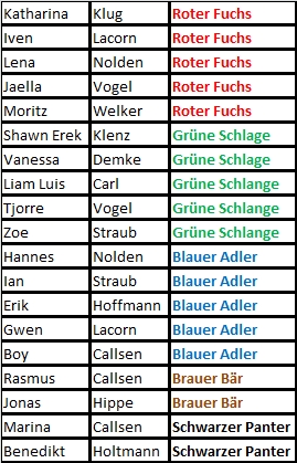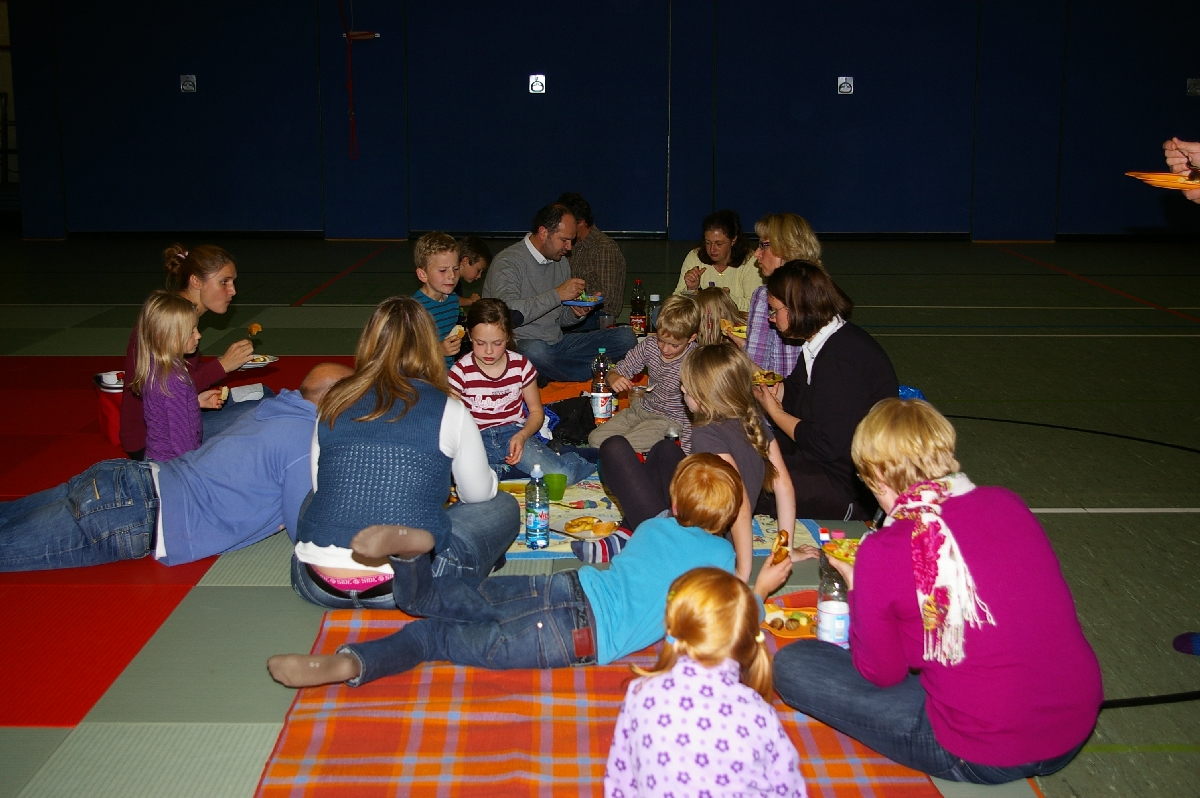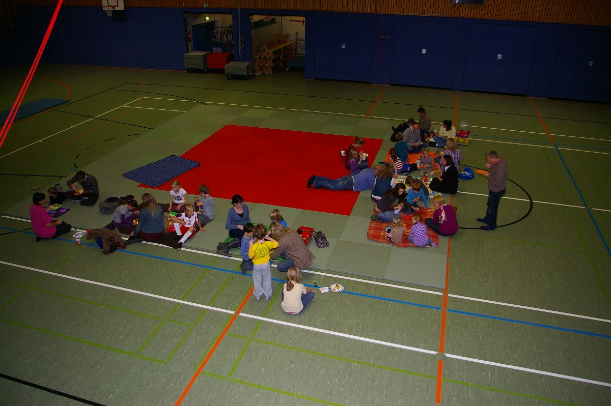 Nach der Stärkung mit deliziösen Nudelsalaten, Frikadellen, Brot, Nachtisch und vielem mehr, war es an der Zeit die Safari-Endergebnisse zu verkünden. Schnell war klar, dass es keine gelben Kängurus geben konnte, bei der tollen Leistung unserer Teilnehmer! Hervorzuheben ist der gute Einstand derjenigen Kinder, die zum ersten Mal an unserer Judo-Safari mitwirkten. So erwarben Liam Luis, Tjorre und Zoe schon auf Anhieb die grüne Schlange; Gwen sogar den blauen Adler! Den roten Fuchs gewannen Katharina, Iven, Jaella und Moritz, aber bestimmt räumen sie bei der nächsten stattfindenden Safari im Herbst 2012 bedrohlichere Tiere ab. Nach weiteren Klönschnacks sowie einem abschließenden Basketball-Match, bei dem alle Judoka gegen die ausgeruhten Eltern antraten und einen ganz knappen Sieg erzielten, ging ein ereignisreicher Freitag zu Ende.