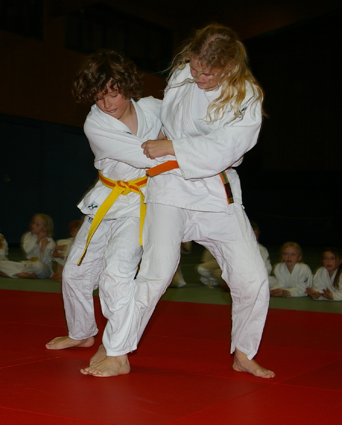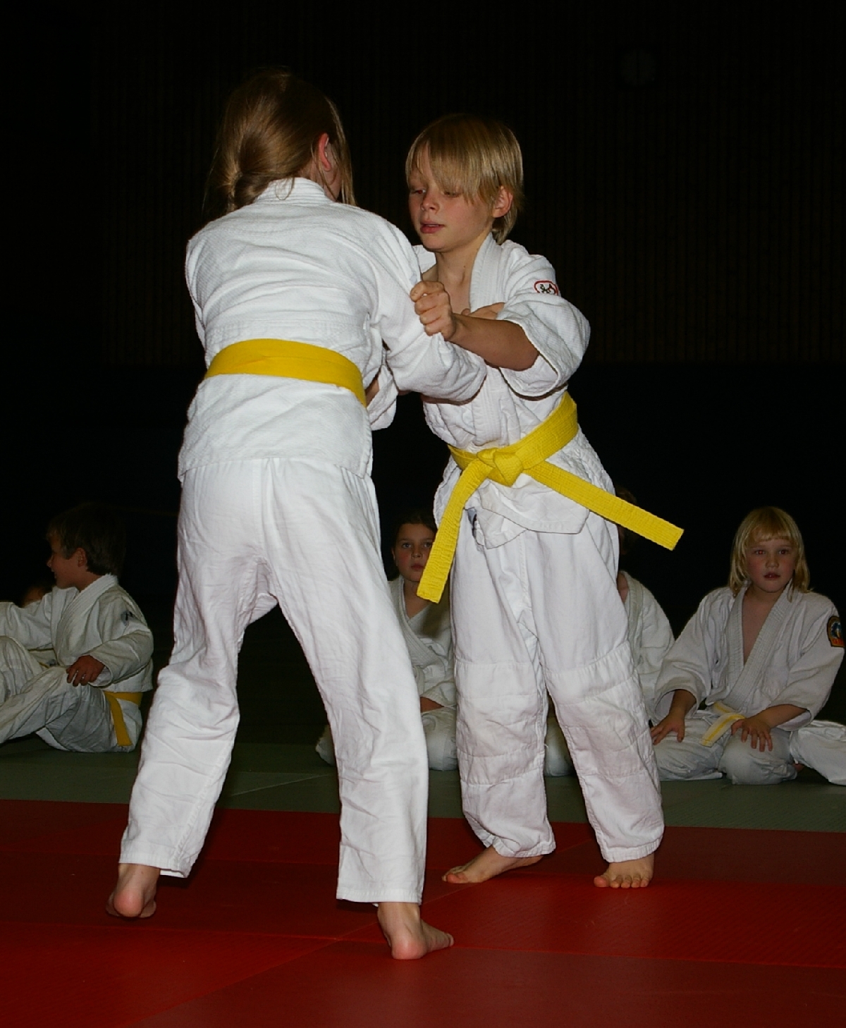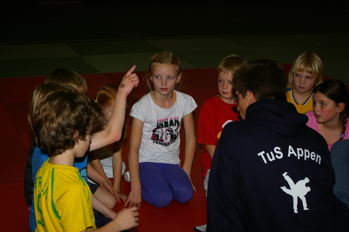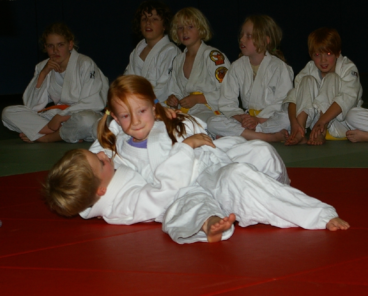 Nachdem nun alle Kinder den Kreativ- und Leichtathletikteil erfolgreich absolviert hatten und die ersten Eltern ihre für das Abendbuffet mitgebrachten Leckereien auftischten und allein dessen Anblick bei einigen von uns schon zur Entstehung von ganz anderen Aufgabenstellungen führte, da ging es mit der Judo-Safari erst so richtig los! Matthias, in der besonders beliebten Funktion eines Kampfrichters, ließ zunächst unsere Jüngsten (Zoe, Iven, Tjorre & Liam Luis) im Boden miteinander kämpfen. Dabei stellte Zoe mit zwei Siegen ihr Können eindrucksvoll unter Beweis. Aber auch Tjorre und Liam Luis konnten jeweils einen Kampf für sich entscheiden. Bei den erfahrenen und älteren Kämpfern konnte Benedikt alle seine Gegner zügig „ausschalten“ und strich damit die höchste, beim Budo-Wettbewerb zu erreichende Punktzahl ein. Rasmus verbuchte am Ende drei hart erkämpfte Siege und auch bei Ian und Erik reichte es zu jeweils zwei Erfolgen. Aber was war nur mit Hannes los, der sonst immer auf der Siegerseite steht? Einen einzigen Sieg errang er, woran lag es also? Nun, antreten musste er gegen die unschlagbare Marina. Das sagt schließlich alles, oder? Na, und jetzt durfte endlich vom Buffet gefuttert werden…