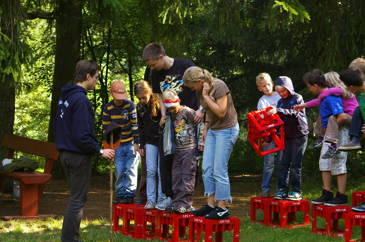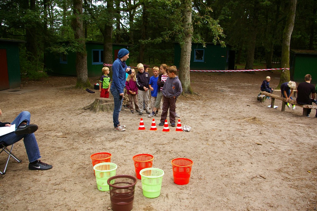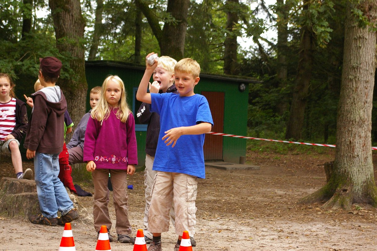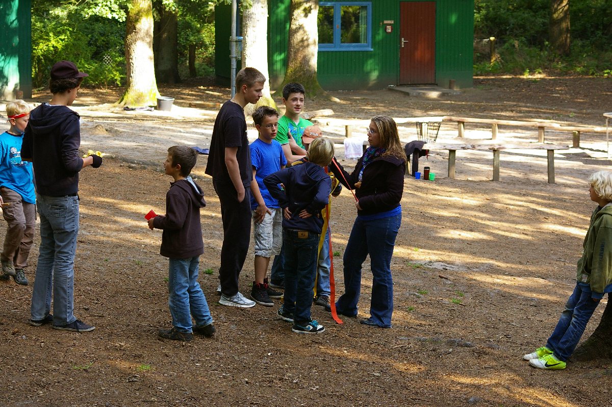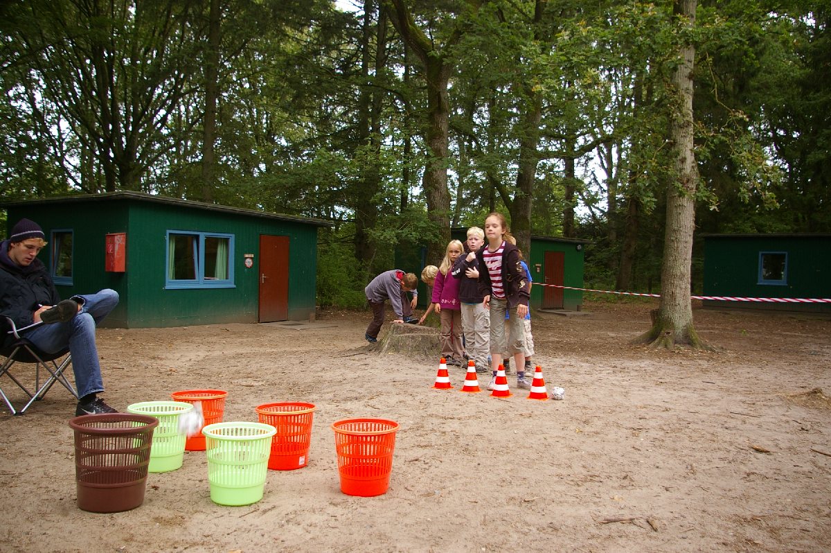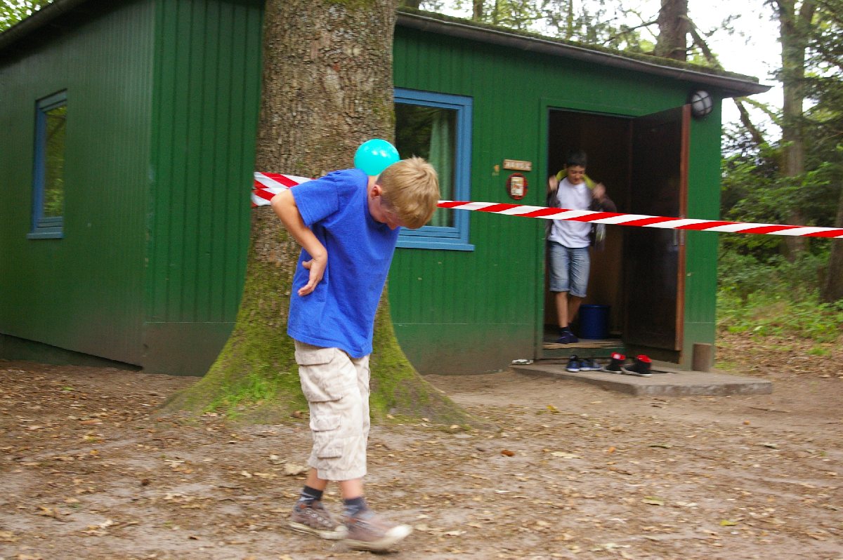 Der nächste Morgen begann früher als geplant. Schon um kurz vor sieben liefen die ersten Kinder zum Waschhäuschen und ließen sich es anschließend nicht nehmen, die Betreuer lautstark zu wecken, die es nicht rechtzeitig aus den Betten geschafft hatten. Der Vormittag war von vielen kleinen Wettbewerben geprägt. So wurden Becher auf dem Kopf balanciert, während man eine abgesteckte Strecke zurücklegen musste. Papierknäule in Mülleimer geworfen und 30 Sekunden über einen Baumstamm gehüpft.