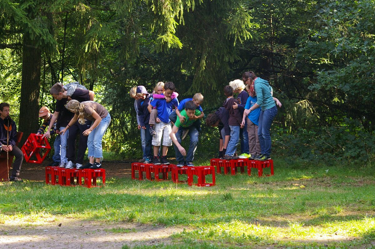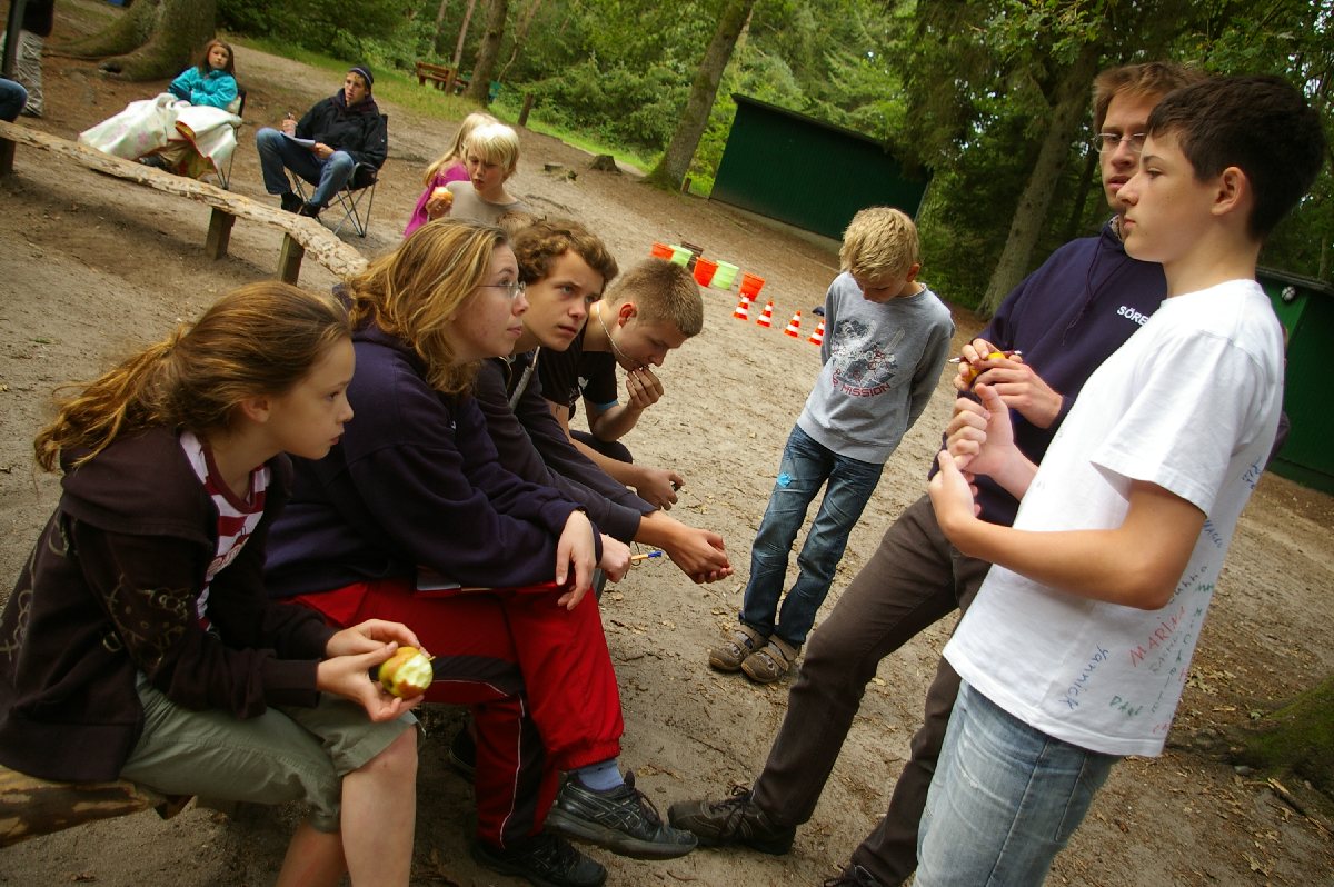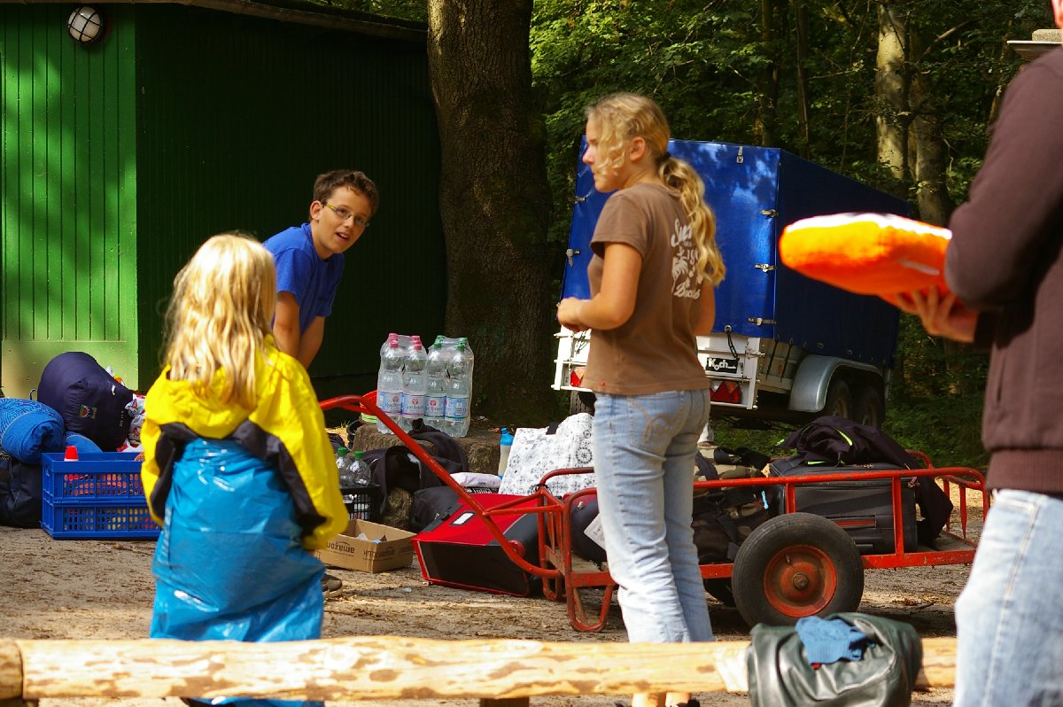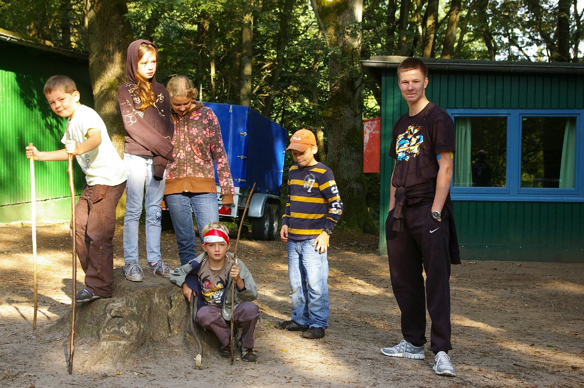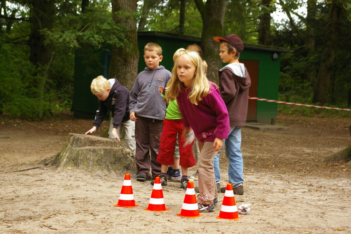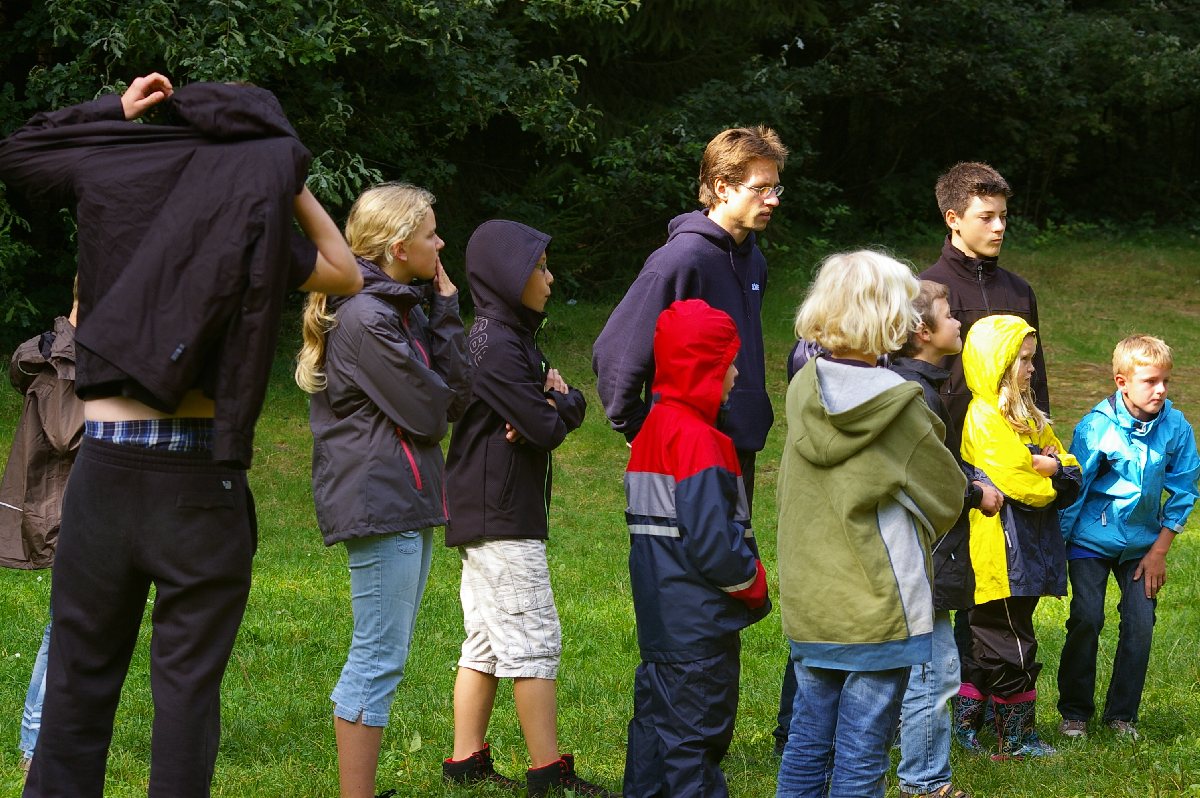 Der nächste Morgen begann früher als geplant. Schon um kurz vor sieben liefen die ersten Kinder zum Waschhäuschen und ließen sich es anschließend nicht nehmen, die Betreuer lautstark zu wecken, die es nicht rechtzeitig aus den Betten geschafft hatten. Der Vormittag war von vielen kleinen Wettbewerben geprägt. So wurden Becher auf dem Kopf balanciert, während man eine abgesteckte Strecke zurücklegen musste. Papierknäule in Mülleimer geworfen und 30 Sekunden über einen Baumstamm gehüpft.