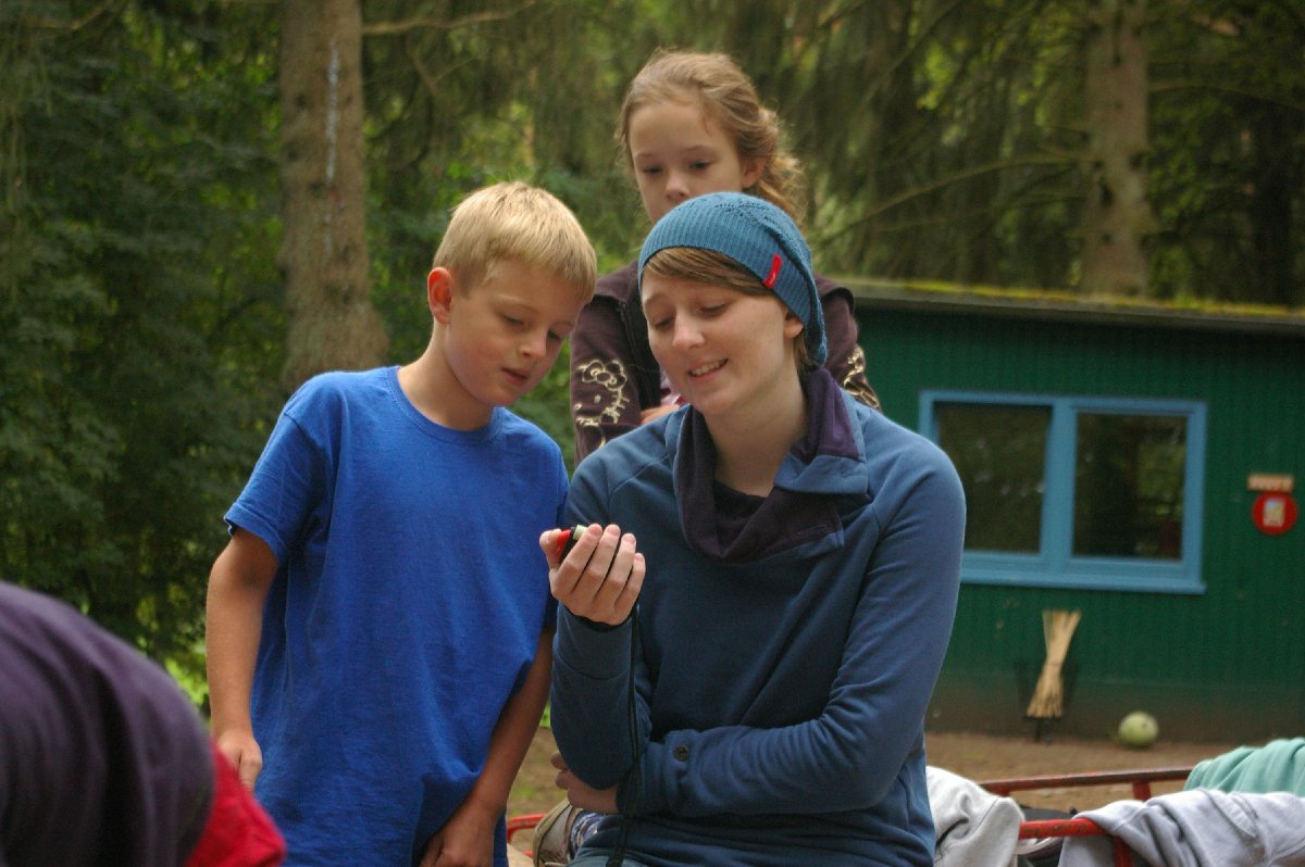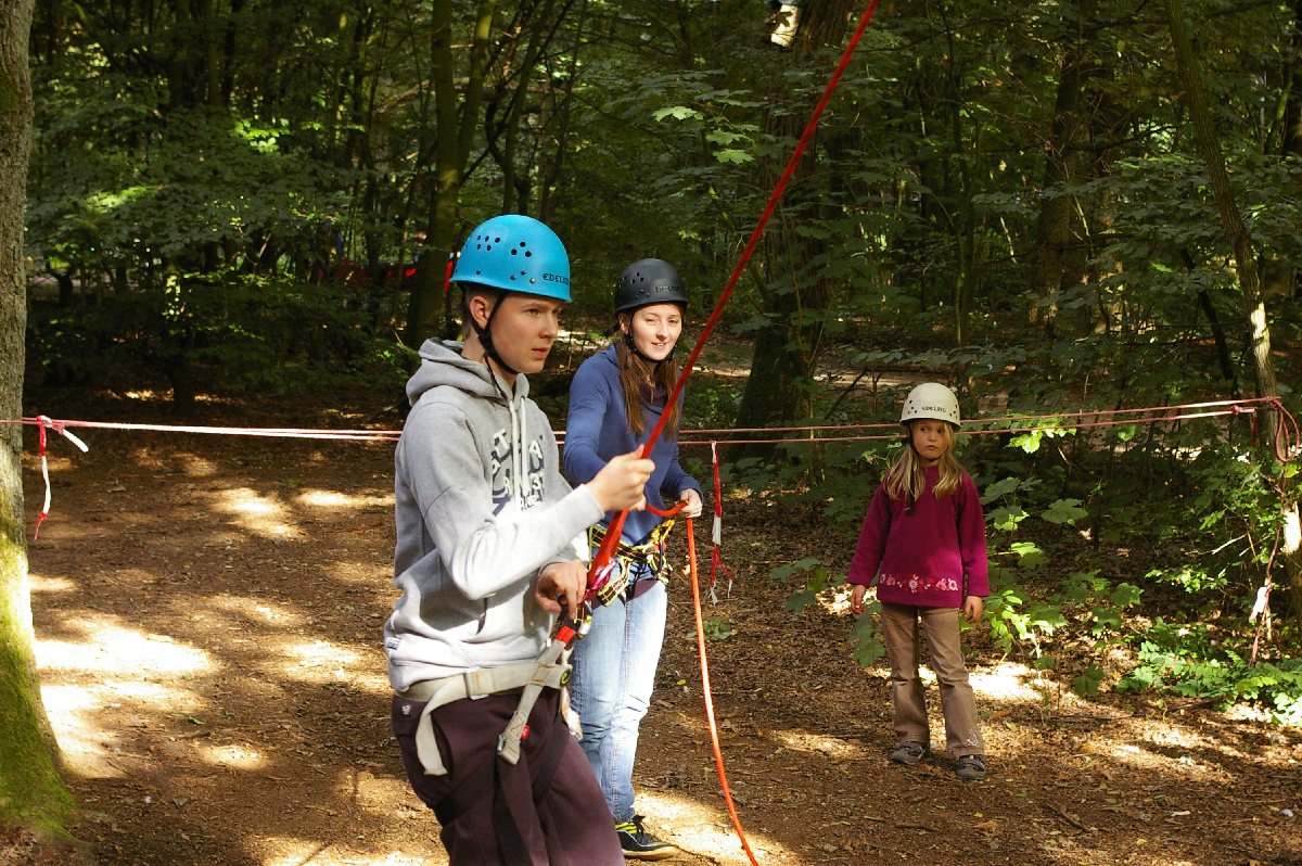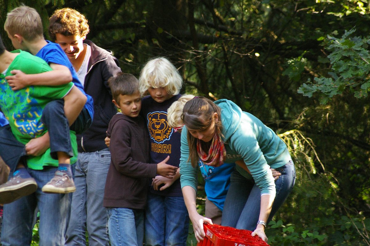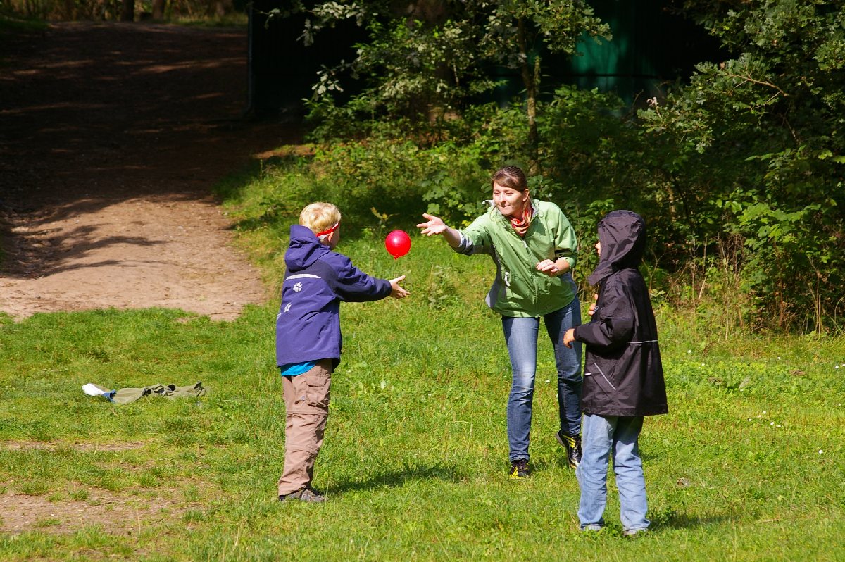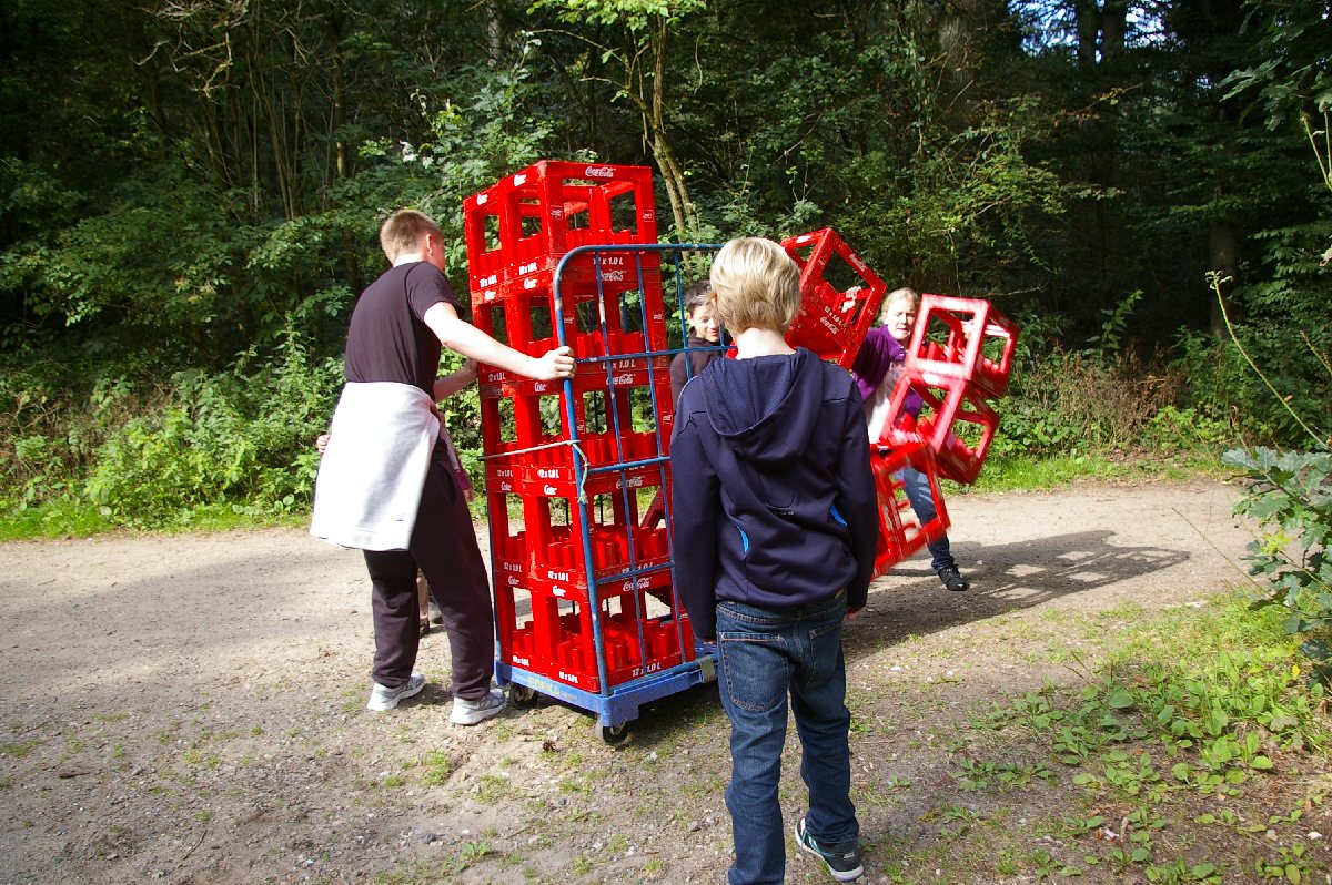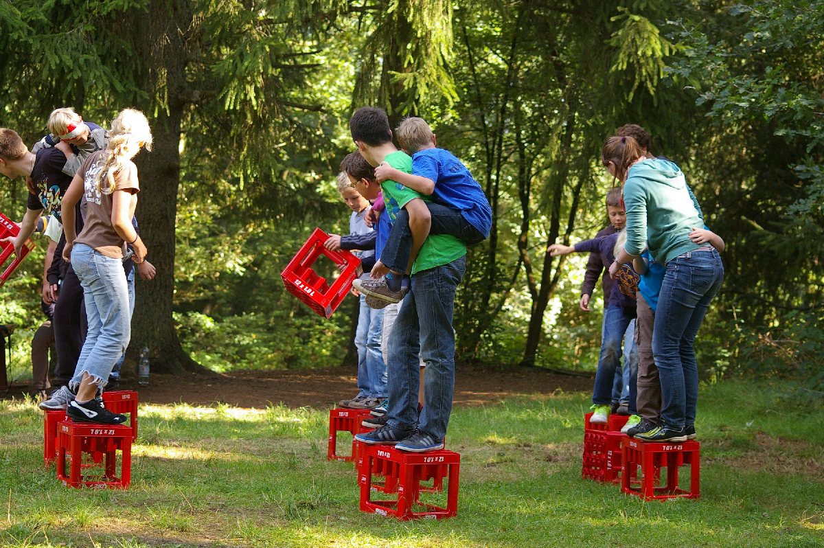 Der nächste Morgen begann früher als geplant. Schon um kurz vor sieben liefen die ersten Kinder zum Waschhäuschen und ließen sich es anschließend nicht nehmen, die Betreuer lautstark zu wecken, die es nicht rechtzeitig aus den Betten geschafft hatten. Der Vormittag war von vielen kleinen Wettbewerben geprägt. So wurden Becher auf dem Kopf balanciert, während man eine abgesteckte Strecke zurücklegen musste. Papierknäule in Mülleimer geworfen und 30 Sekunden über einen Baumstamm gehüpft.