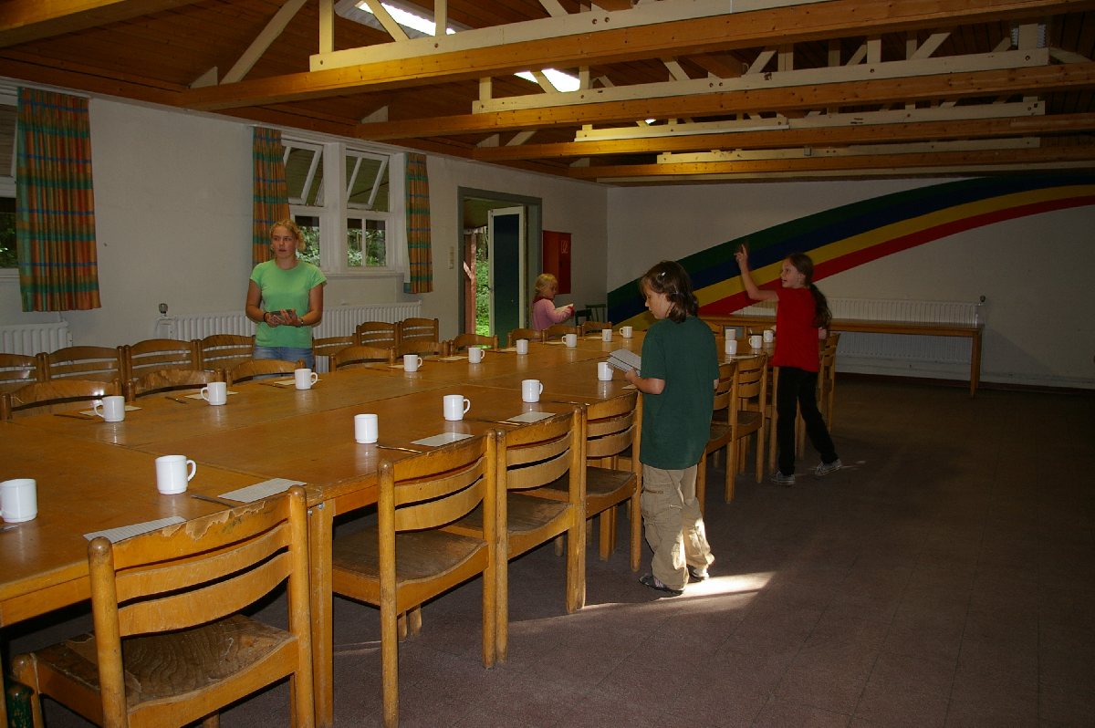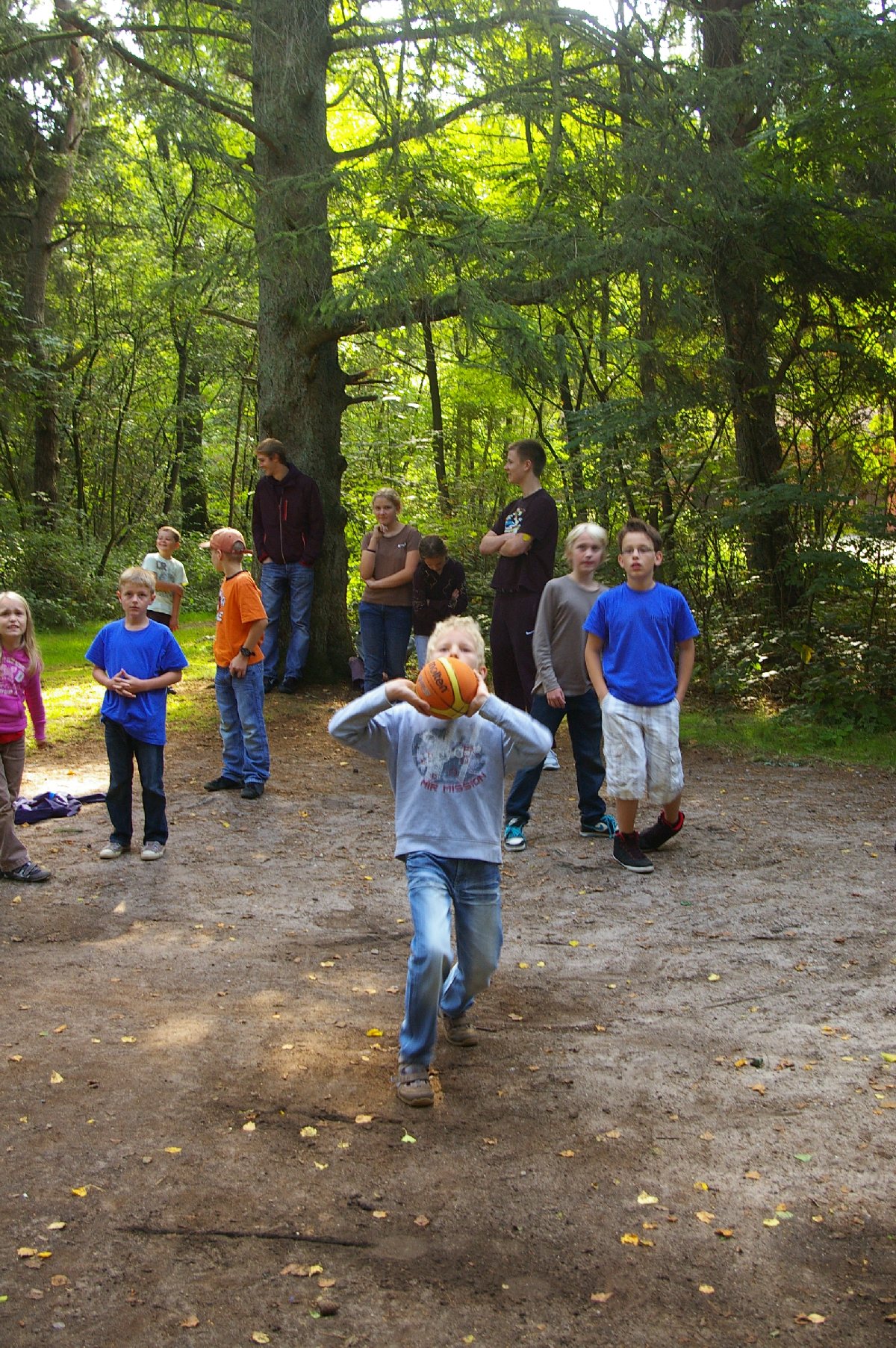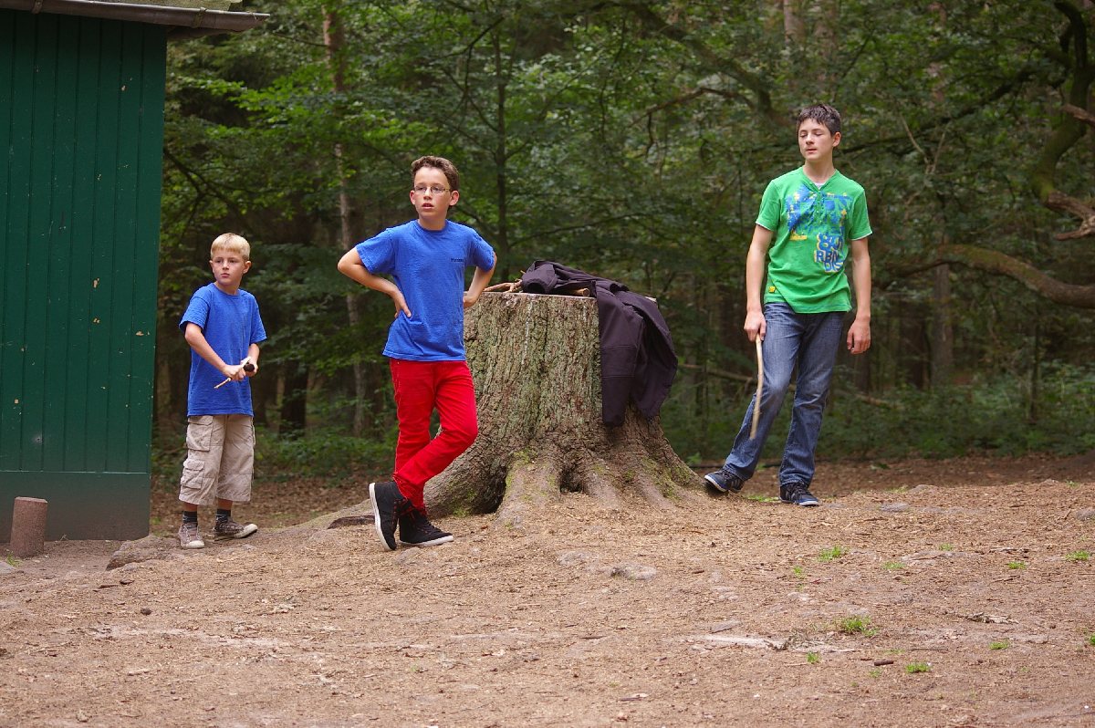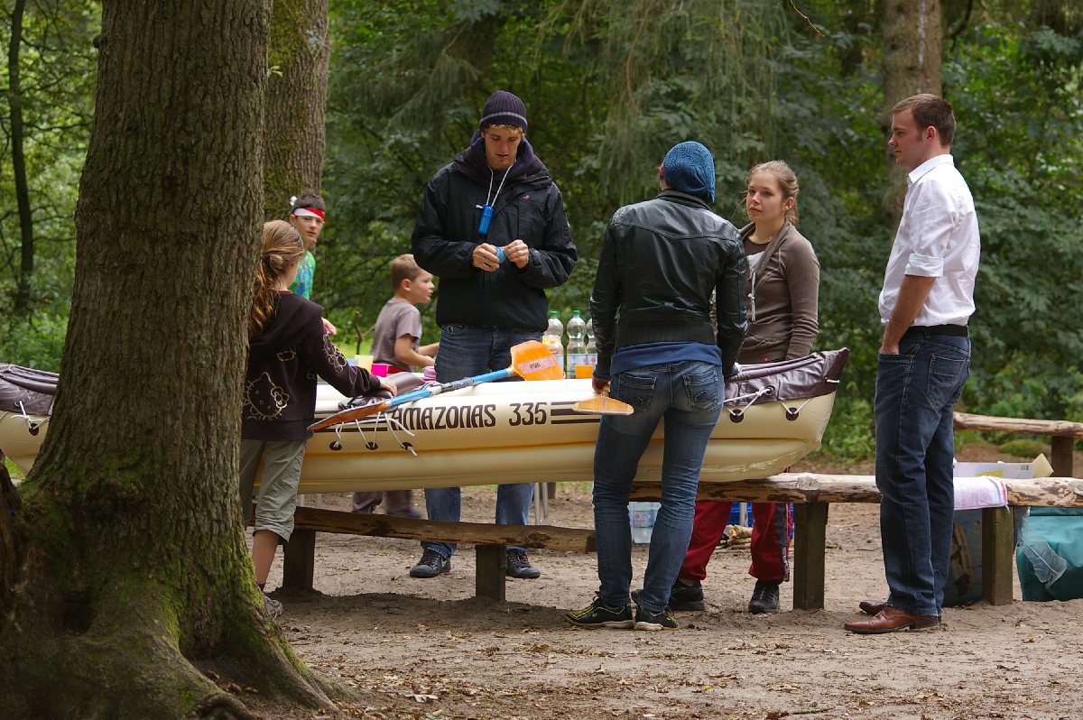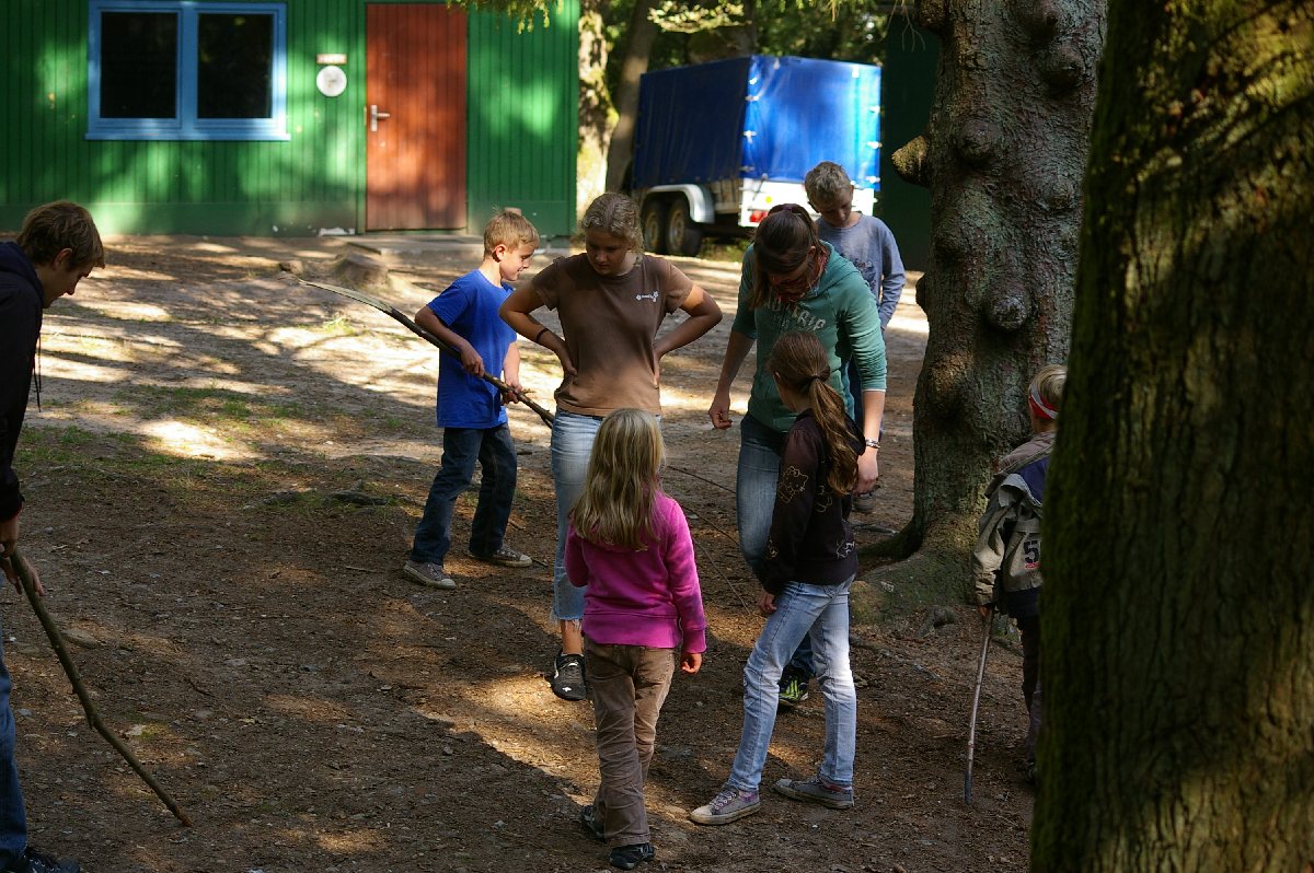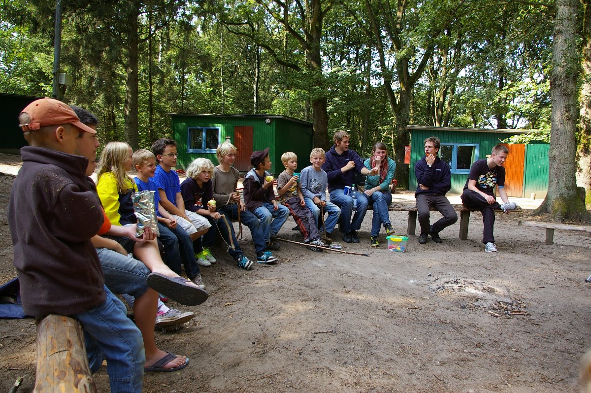 Der nächste Morgen begann früher als geplant. Schon um kurz vor sieben liefen die ersten Kinder zum Waschhäuschen und ließen sich es anschließend nicht nehmen, die Betreuer lautstark zu wecken, die es nicht rechtzeitig aus den Betten geschafft hatten. Der Vormittag war von vielen kleinen Wettbewerben geprägt. So wurden Becher auf dem Kopf balanciert, während man eine abgesteckte Strecke zurücklegen musste. Papierknäule in Mülleimer geworfen und 30 Sekunden über einen Baumstamm gehüpft.