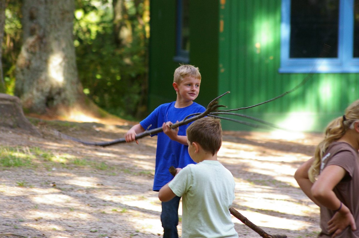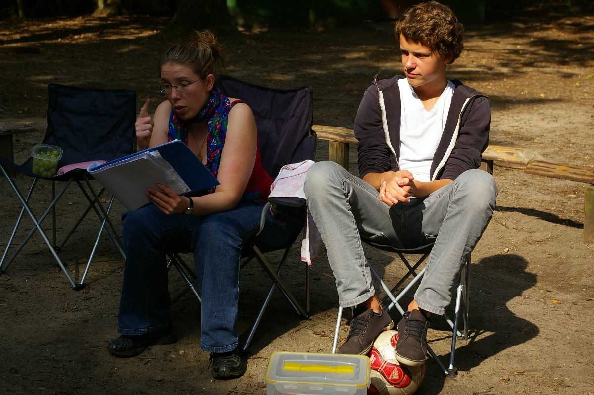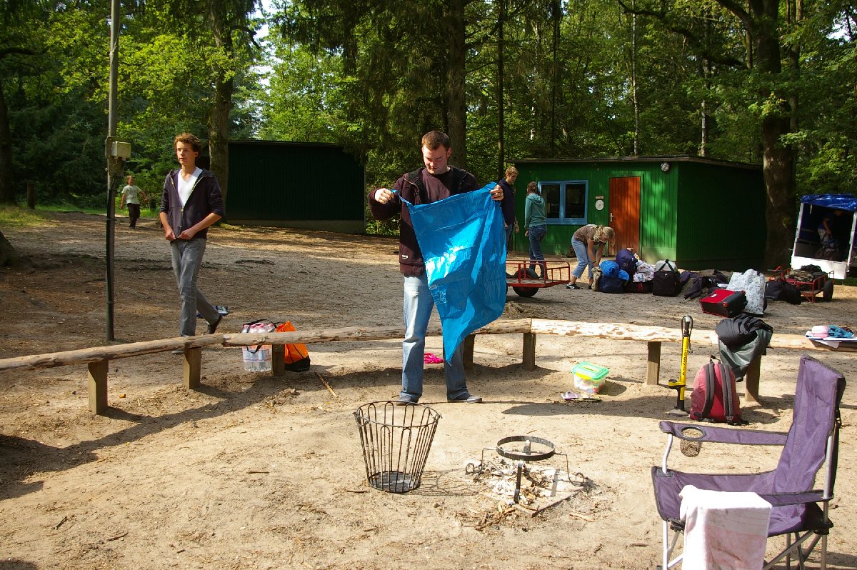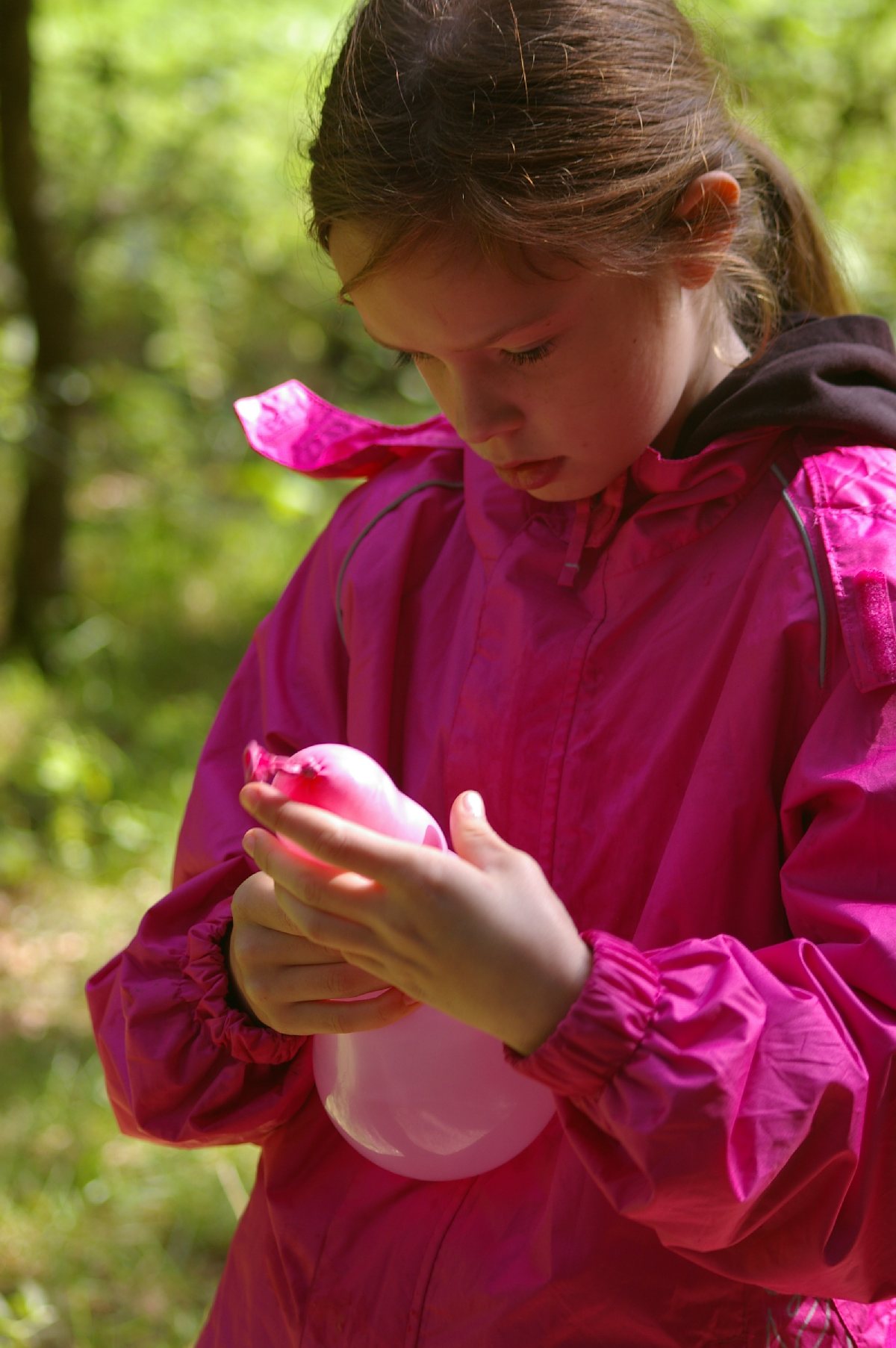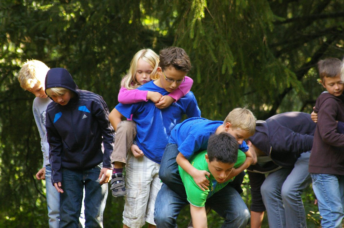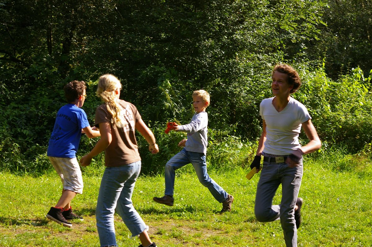 Der nächste Morgen begann früher als geplant. Schon um kurz vor sieben liefen die ersten Kinder zum Waschhäuschen und ließen sich es anschließend nicht nehmen, die Betreuer lautstark zu wecken, die es nicht rechtzeitig aus den Betten geschafft hatten. Der Vormittag war von vielen kleinen Wettbewerben geprägt. So wurden Becher auf dem Kopf balanciert, während man eine abgesteckte Strecke zurücklegen musste. Papierknäule in Mülleimer geworfen und 30 Sekunden über einen Baumstamm gehüpft.