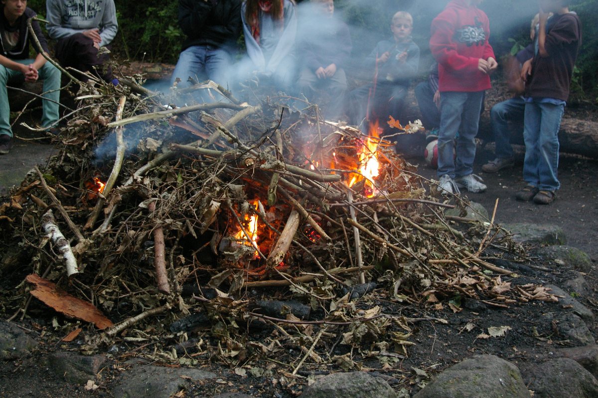 Danach machten wir uns auf zum Lagerfeuer, was nicht ohne Schwierigkeiten von statten ging. Durch falsche Schichtung und nasses Holz war es sehr langwierig den Haufen anzubekommen. Erst durch das beherzte Eingreifen einer feuerliebenden Dame hatten wir nach über einer Stunde endlich ein Lagerfeuer.