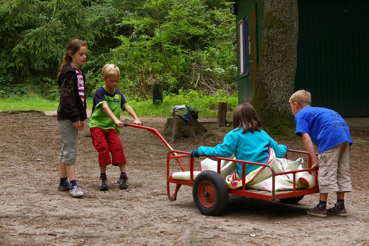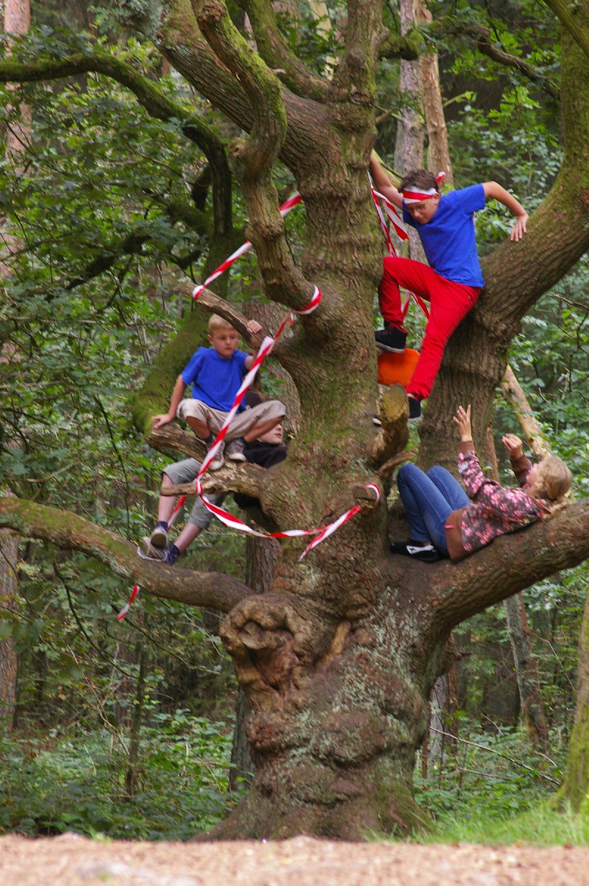 Bevor wir abfuhren, hatten die Kinder noch Zeit an ihren Mooshütte weiter zu bauen, die sie gemeinsam in der Freizeit errichtet hatten, und ihrer Lieblingsbeschäftigung, auf Bäume zu klettern, nach zu gehen. Alleine wegen eines Baumes wollen viele im nächsten Jahr wieder an den Brahmsee. Bis dahin sagen wir Tschüß...