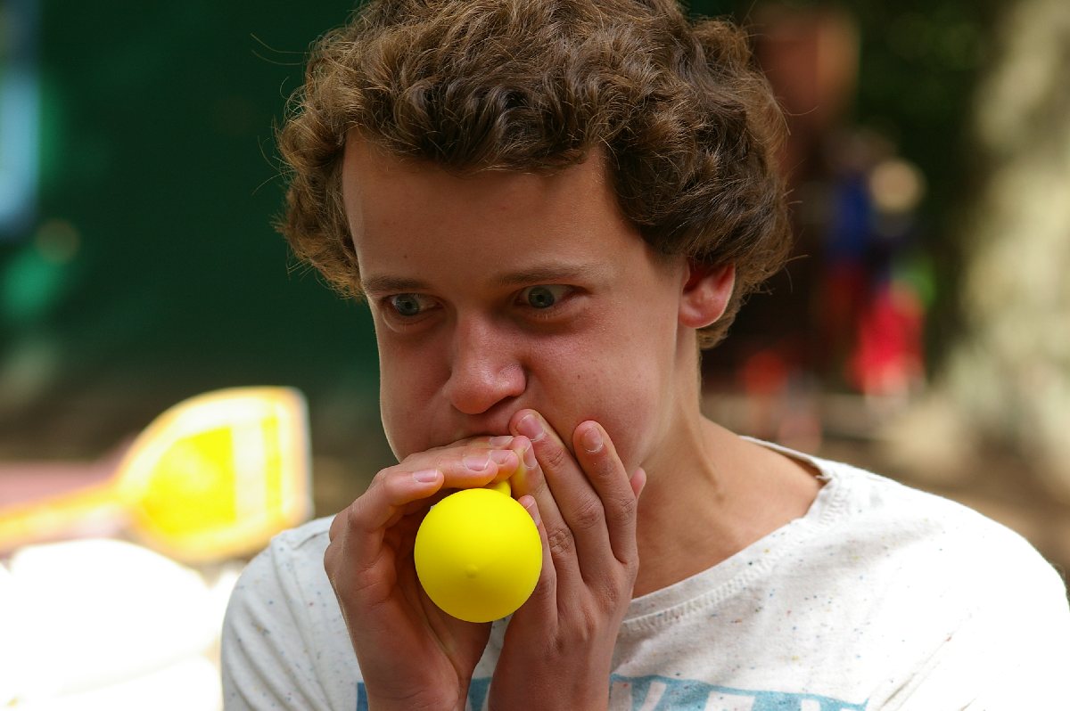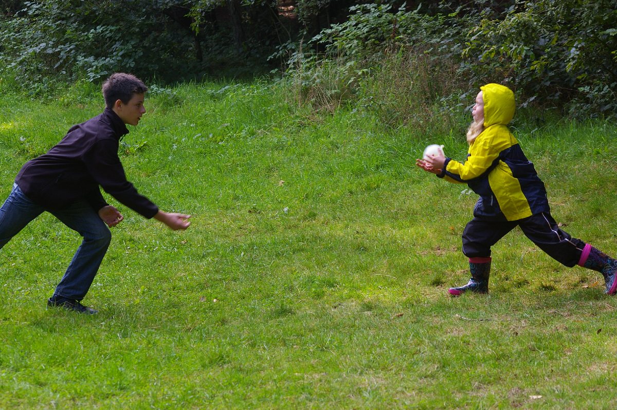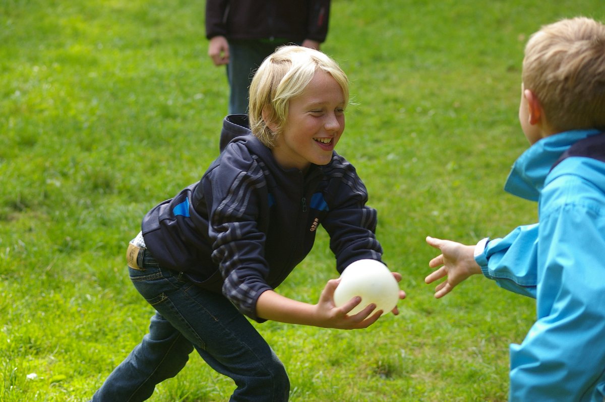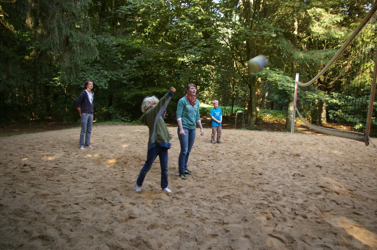 Am nächsten Morgen war es ruhig im Lager und fast alle schliefen noch. Doch nach der ersten Weckrunde regten sich zu mindest alle Kinder. Der eine oder andere musste jedoch besonders motiviert werden oder brauchte erst mal eine Dusche und eine musste sogar kalt duschen, ja, Wette ist eben Wette. Dennoch fanden sich fast alle rechtzeitig am Frühstückstisch ein. Frisch gestärkt und endlich vollkommen wach widmeten wir uns aufgeteilt in drei Gruppen verschieden Mannschaftsspielen. Wir spielten ein Mix aus Volleyball und Ball über die Schnur, warfen Körbe, machten einen Staffellauf, legten eine Strecke auf Kisten zurück, ohne den Boden zu berühren und warfen uns Wasserbomben zu. Alles in allem ein sehr spaßiger Vormittag.