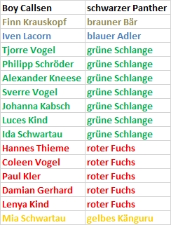 Diesjährig nahmen 14 Judoka im Alter zwischen sieben und dreizehn Jahren an der Judosafari mit anschließender Übernachtung teil. Dabei stand die Durchführung zunächst unter keinem guten Stern, da doch der Laternenumzug am selben Abend stattfinden sollte und drei Judoka auch der Feuerwehr angehören. Kurzerhand wurde umdisponiert und der Laternenumzug mit in die Judosafari integriert. Für den obligatorischen Kreativteil galt es daher diesmal eine Judo-Laterne zu basteln, die am Abend dem großen Praxistest unterzogen wurde. Nicht nur die Kreativität und Praxistauglichkeit der Laternen überzeugte die Jury, auch die zuvor im Leichtathletikteil erreichten Punkte und im Budo-Wettbewerb erbrachten Leistungen konnten sich sehen lassen. Der Eier- und Tennisballhürdenlauf erfüllte die verpflichtende Bedingung „Laufen“, der im vergangenen Jahr klassisch durchgeführte Dreisprung wurde nun zum Hochsprung in der Disziplin „Springen“ abgeändert. Der Weitwurf eines Judogürtels repräsentierte schließlich das „Werfen eines Gegenstandes“. Wie wahr konnten die meisten Punkte natürlich im Randori erarbeitet werden, in denen Boy Callsen (5 Siege), Finn Krauskopf (3 Siege) sowie Alexander Kneese, Sverre Vogel und Ida Schwartau mit jeweils zwei Siegen wertvolle Punkte kassierten. Die Bilanz sieht dieses Jahr so aus: ein gelbes Känguru, fünf rote Füchse, sieben grüne Schlangen, einen blauen Adler, einen braunen Bären sowie einen schwarzen Panther. Die höchste Auszeichnung erlangte letztlich Boy Callsen mit 251 von 275 maximal erreichbaren Punkten. Allen einen herzlichen Glückwunsch, verbunden mit unserem Wunsch, dass wir auch im nächsten Jahr wieder auf eure Teilnahme zählen können!