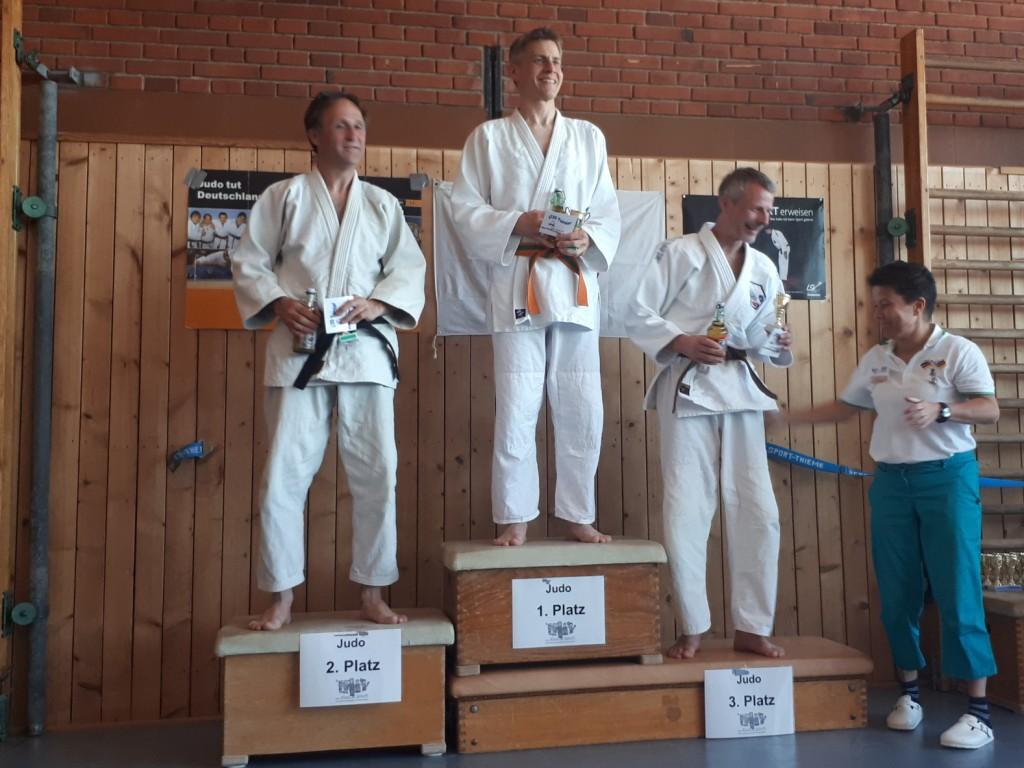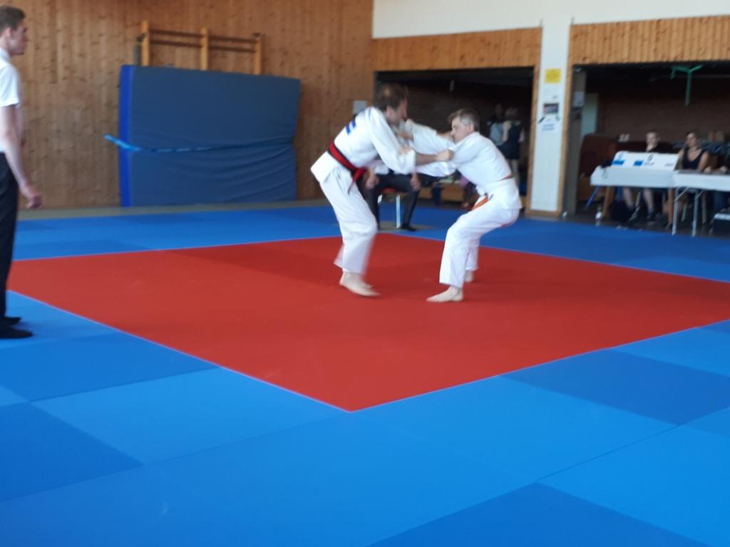 Martin konnte in seinem ersten Kampf einen Wazari für einen Konter holen und danach im Boden mit einem Kesa-gatame den Kampf für sich entscheiden. Im zweiten Kampf hatte auch er einen erfahreneren Dan-Träger, den er jedoch wunderschön nach einem missglückten De-ashi-barai Angriff des anderen gekontert hat und Ippon bekam. Super Leistung!