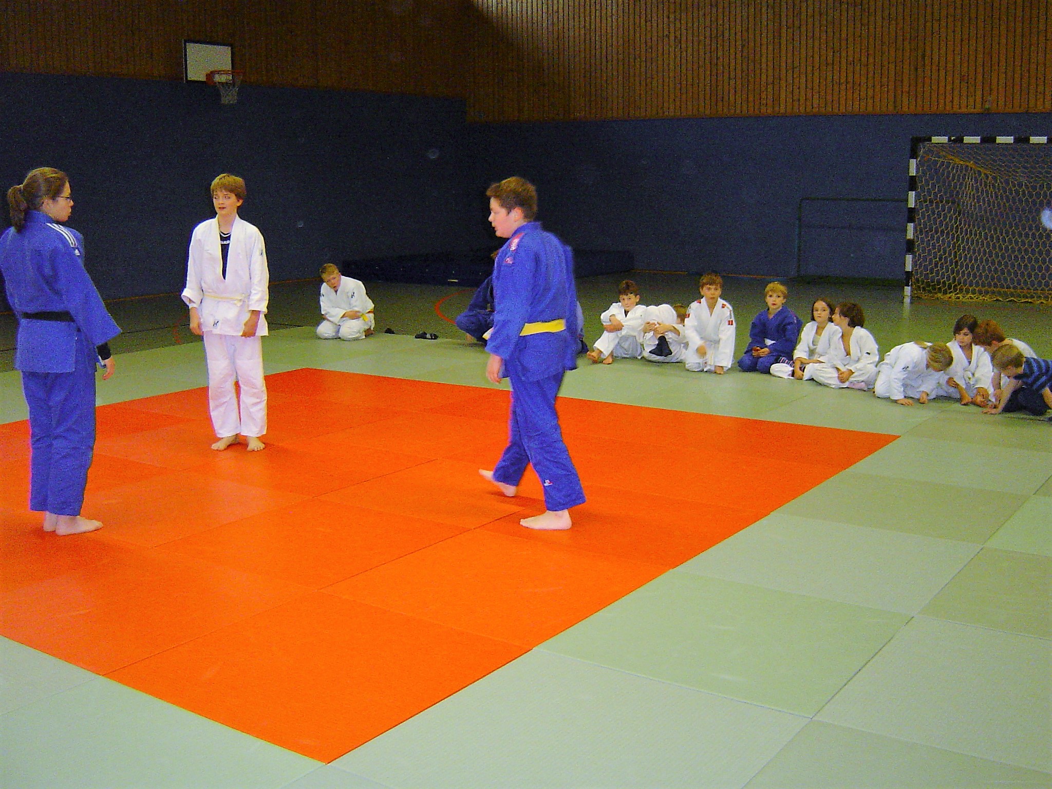 Diesjährig nahmen 14 Judoka im Alter zwischen sieben und dreizehn Jahren an der Judosafari mit anschließender Übernachtung teil. Dabei stand die Durchführung zunächst unter keinem guten Stern, da doch der Laternenumzug am selben Abend stattfinden sollte und drei Judoka auch der Feuerwehr angehören. Kurzerhand wurde umdisponiert und der Laternenumzug mit in die Judosafari integriert. Für den obligatorischen Kreativteil galt es daher diesmal eine Judo-Laterne zu basteln, die am Abend dem großen Praxistest unterzogen wurde. Nicht nur die Kreativität und Praxistauglichkeit der Laternen überzeugte die Jury, auch die zuvor im Leichtathletikteil erreichten Punkte und im Budo-Wettbewerb erbrachten Leistungen konnten sich sehen lassen. Der Eier- und Tennisballhürdenlauf erfüllte die verpflichtende Bedingung „Laufen“, der im vergangenen Jahr klassisch durchgeführte Dreisprung wurde nun zum Hochsprung in der Disziplin „Springen“ abgeändert. Der Weitwurf eines Judogürtels repräsentierte schließlich das „Werfen eines Gegenstandes“. Wie wahr konnten die meisten Punkte natürlich im Randori erarbeitet werden, in denen Boy Callsen (5 Siege), Finn Krauskopf (3 Siege) sowie Alexander Kneese, Sverre Vogel und Ida Schwartau mit jeweils zwei Siegen wertvolle Punkte kassierten. Die Bilanz sieht dieses Jahr so aus: ein gelbes Känguru, fünf rote Füchse, sieben grüne Schlangen, einen blauen Adler, einen braunen Bären sowie einen schwarzen Panther. Die höchste Auszeichnung erlangte letztlich Boy Callsen mit 251 von 275 maximal erreichbaren Punkten. Allen einen herzlichen Glückwunsch, verbunden mit unserem Wunsch, dass wir auch im nächsten Jahr wieder auf eure Teilnahme zählen können!