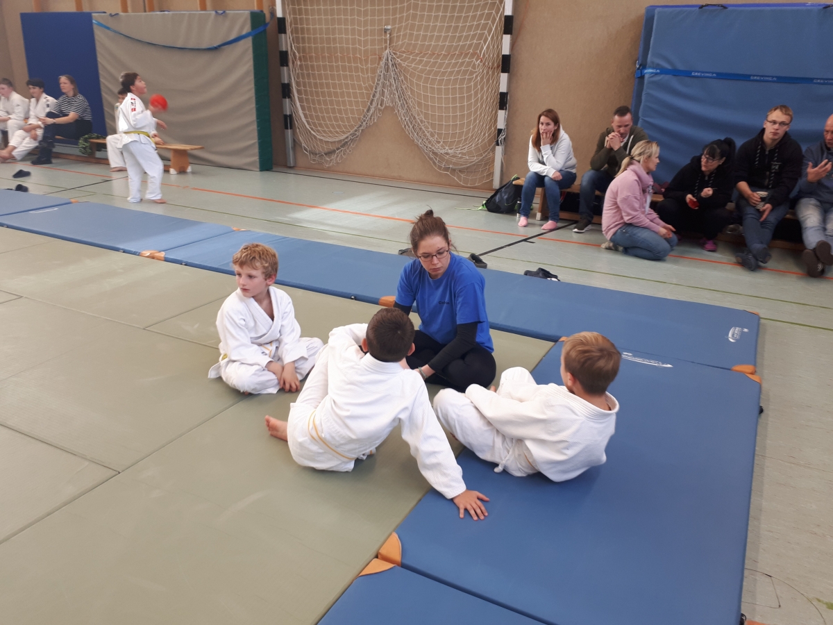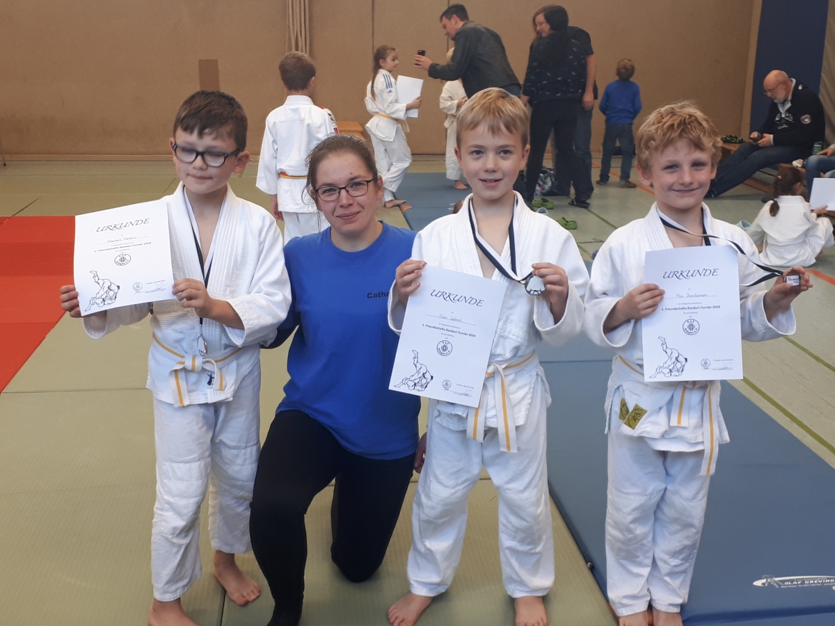 Niko konnte mit drei siegen, Silas mit drei siegen (zwei Ippon) und Max mit vier Siegen und drei Ippon und dem besten Wurf des Tages jeweils ihre Gruppe gewinnen. Ganz tolle Leistung von allen dreien!