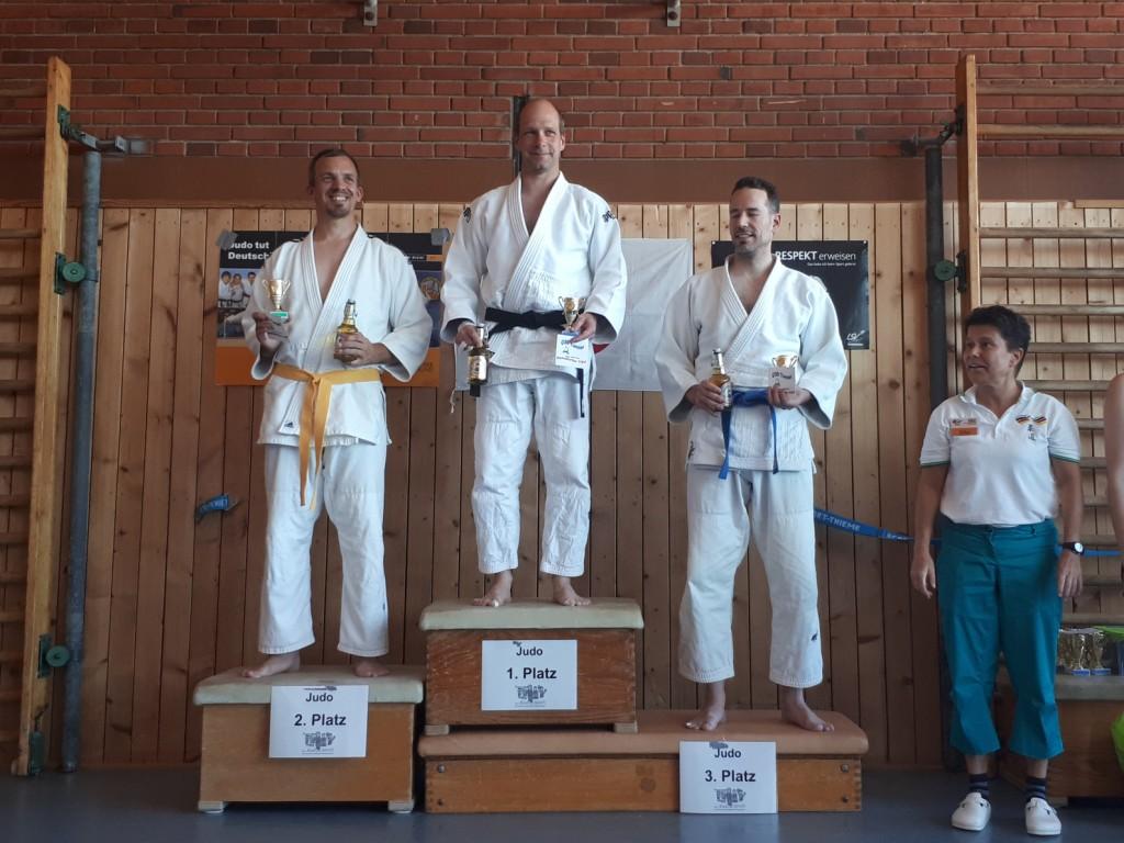 Martin konnte in seinem ersten Kampf einen Wazari für einen Konter holen und danach im Boden mit einem Kesa-gatame den Kampf für sich entscheiden. Im zweiten Kampf hatte auch er einen erfahreneren Dan-Träger, den er jedoch wunderschön nach einem missglückten De-ashi-barai Angriff des anderen gekontert hat und Ippon bekam. Super Leistung!